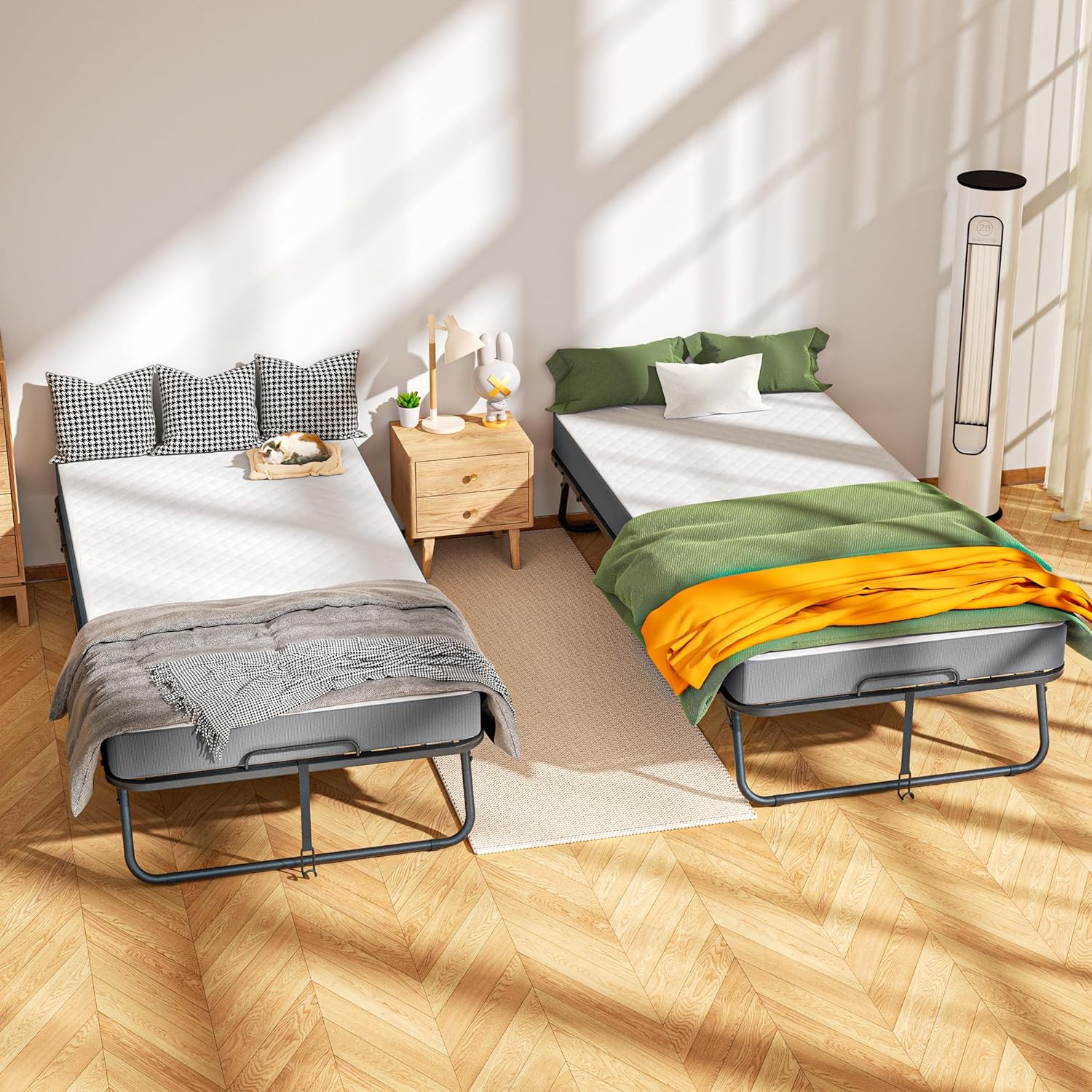 • Load image into Gallery viewer, Folding Single Bed with Mattress, Roll Away Beds for Adults, 75" x 31" Roll Away Bed for Easy Storage, Single Cot Strong Frame for Guest Room, Small Apartment