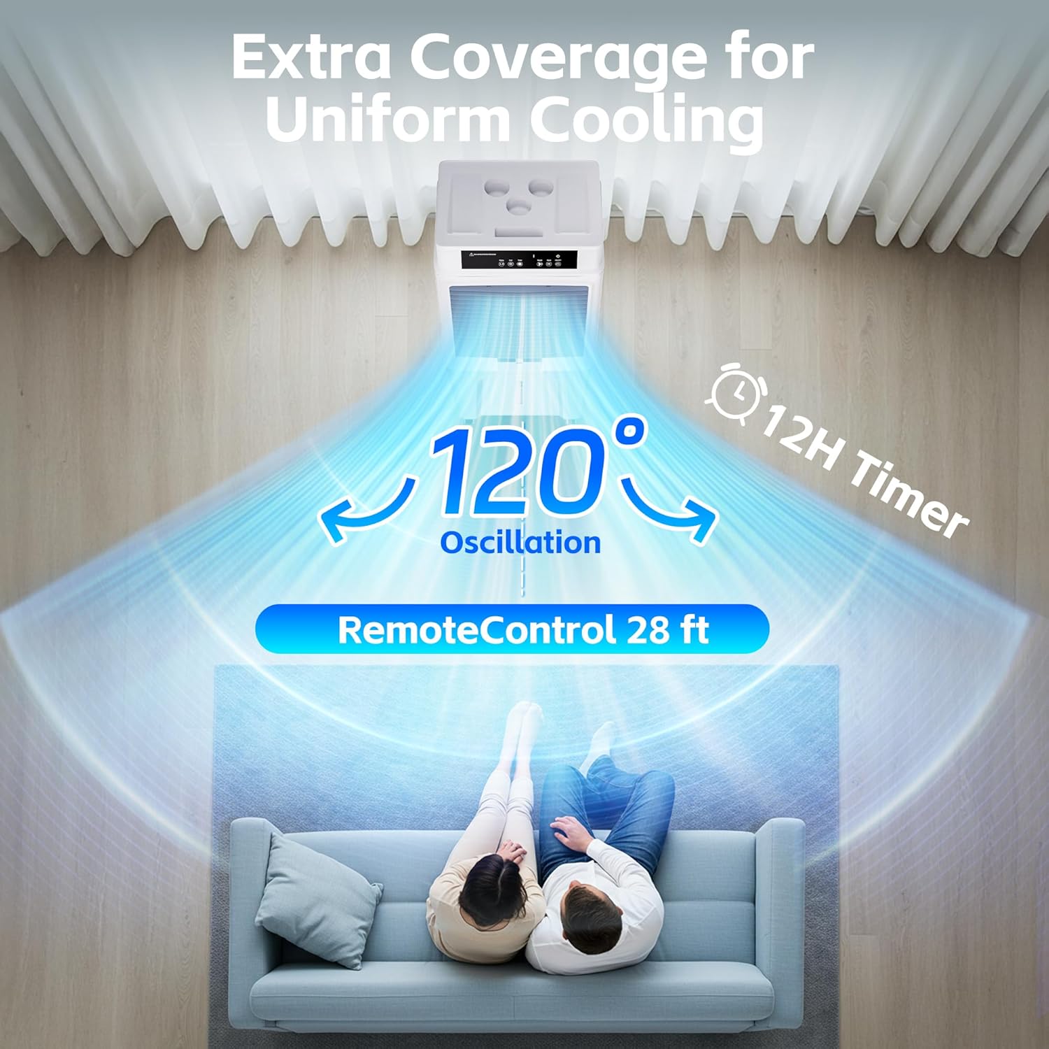 Special Feature | 10.6 Water Tank, 3-Side Cooling Pad, Last-long Copper Motor,1-12h Timer,Touch and Remote Control, 120° Oscillation, Top and Bottom Fill |