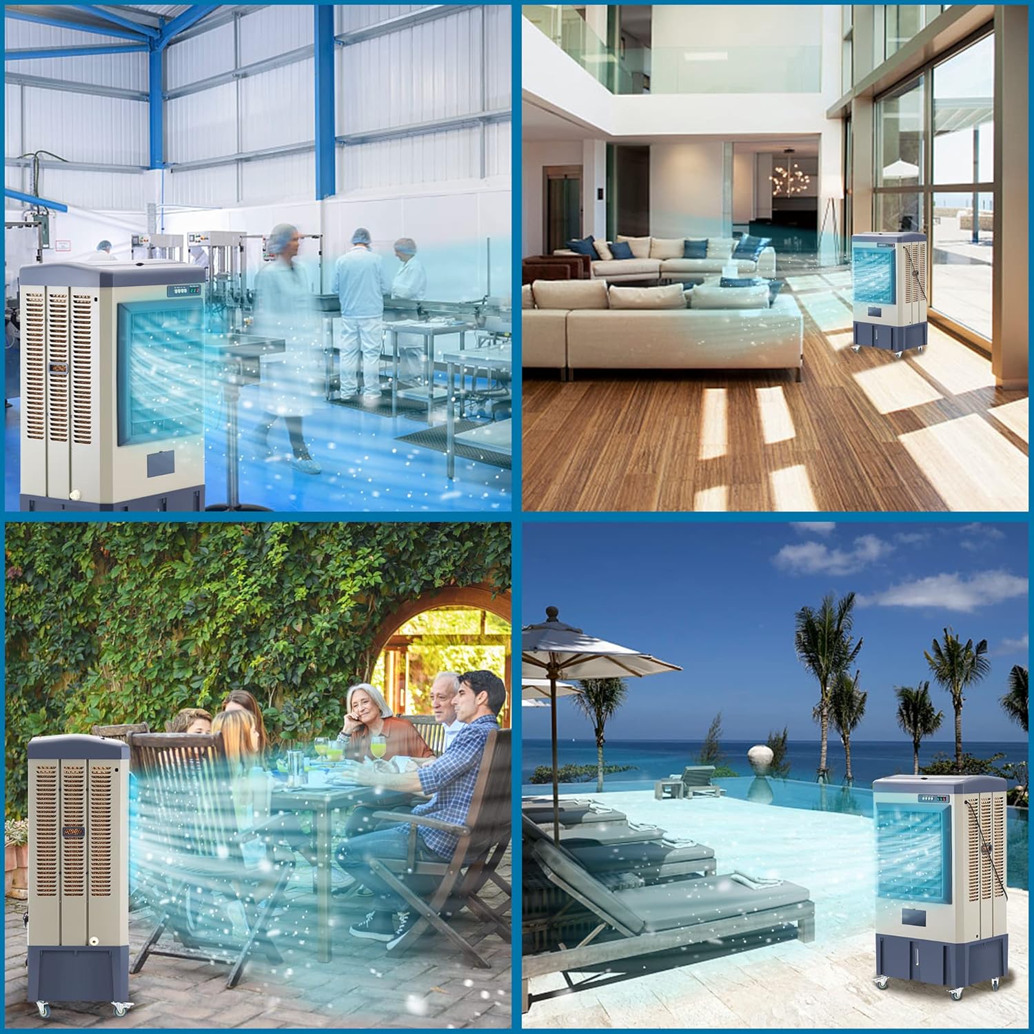 Special Feature | Auto and Top Fill, 10.6 Water Tank, 3-Side Cooling Pad, 110° Oscillation, Adjustable Speeds, Built-In 360° Caster Wheels, Metal Material, Copper Motor, Powerful Cooling, Large Coverage,Easy Operation |