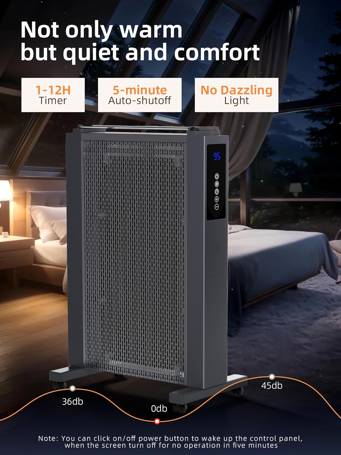 Uthfy 34" Space Heaters for Indoor Use, 1500W Whole Room Electric Heater for Large Room, Quiet Mica Convection Heater with Thermostat, ECO, Remote, Wheel, 12H Timer, Tip-Over & Overheat Protection