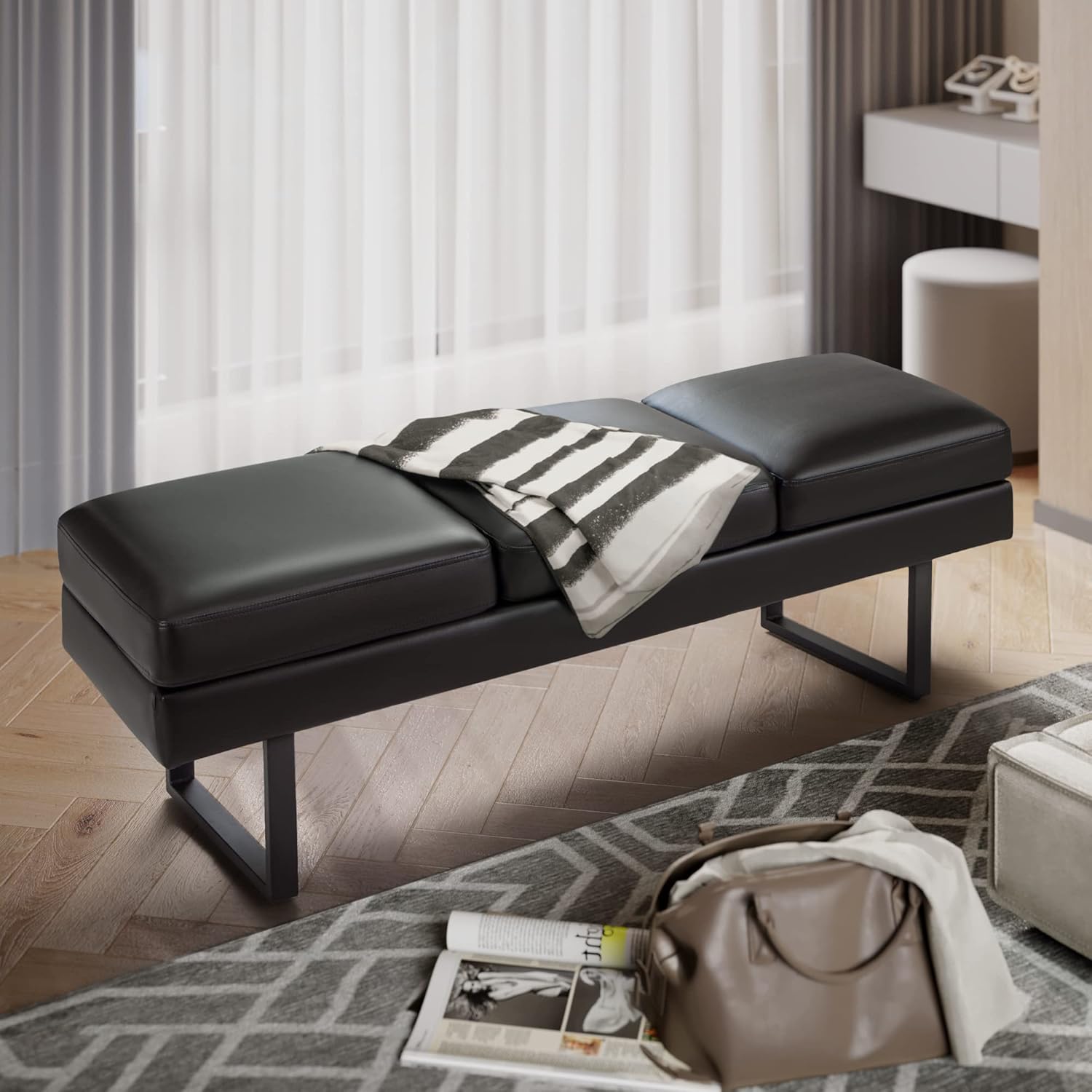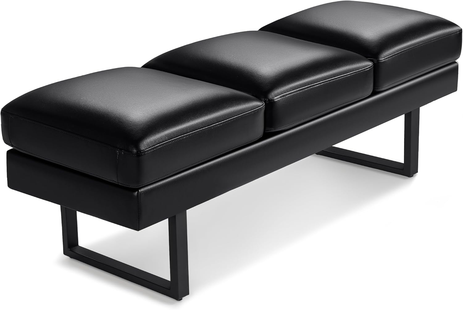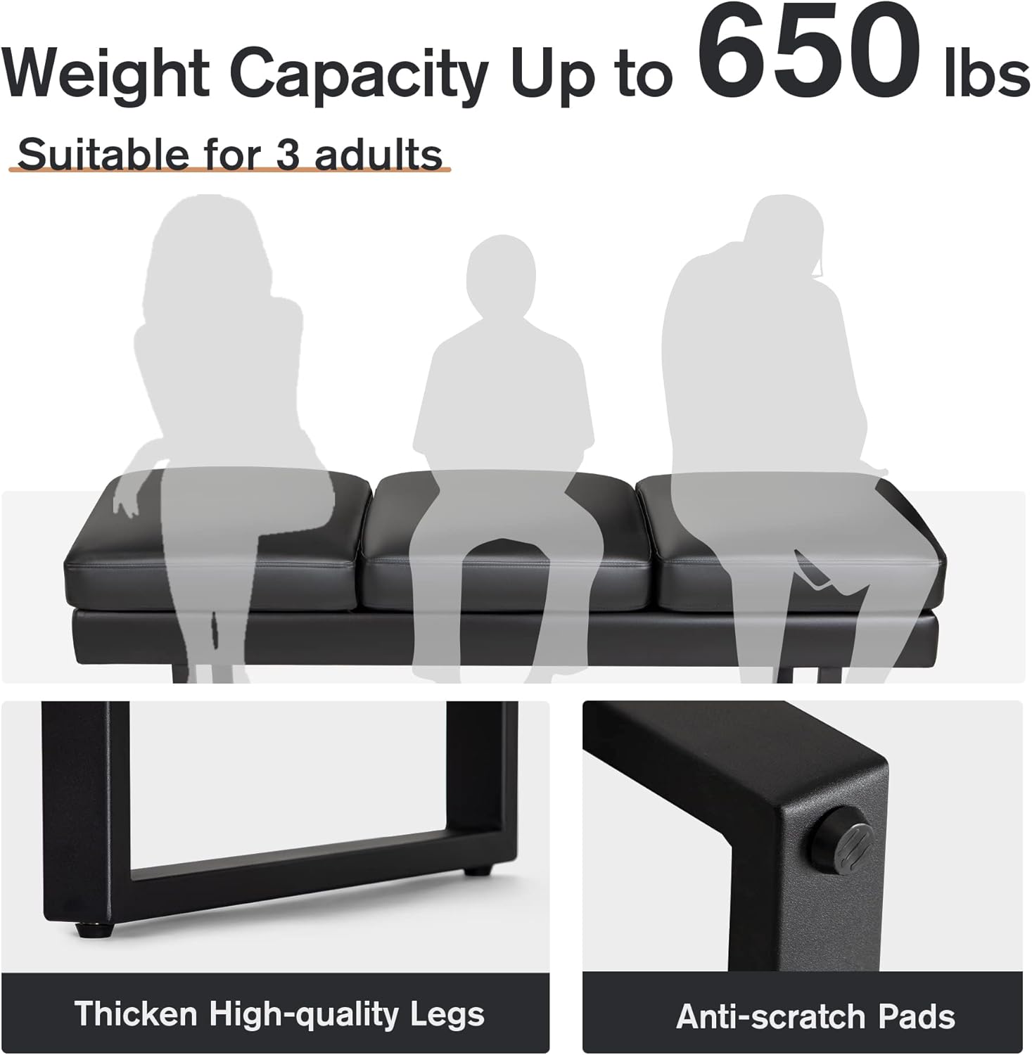 Furmax Waiting Room Chairs Faux Leather Office Guest Chair, 59.6 Inches Conference Room Chairs 3 Seats Upholstered Reception Bench, Lobby Furniture for Salon and Shop, Black